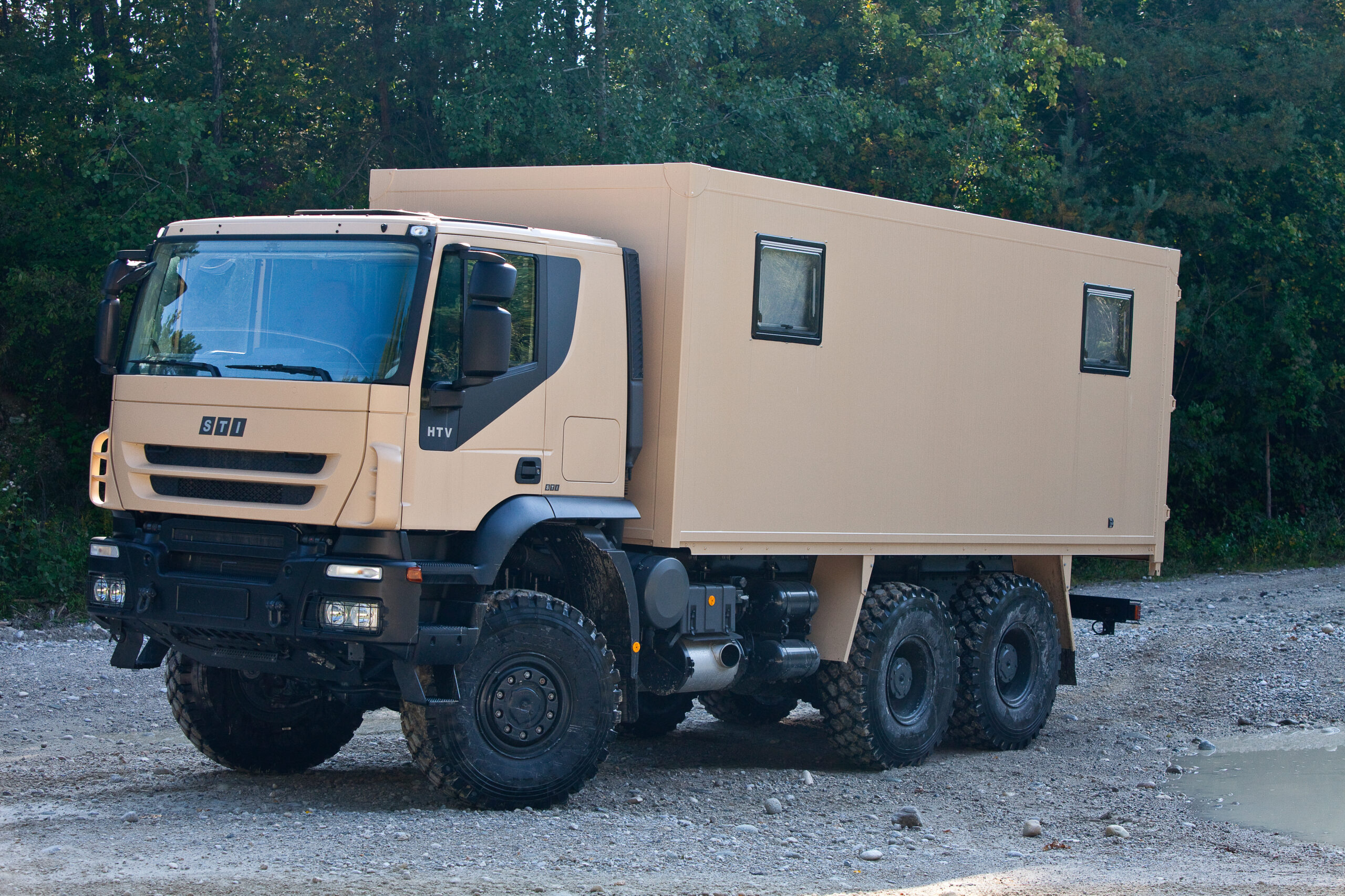 محرك ديزل مع شاحن توربيني ومبرد داخلي مع نظام تبريد مائي عالي الأداء لظروف الصحراء التقييم: ما يصل إلى 480 حصان عزم الدوران: ما يصل إلى 2200 نيوتن متر ناقل حركة يدوي 16 سرعة أو ناقل حركة أوتوماتيكي بالكامل، علبة نقل بسرعتين مع نظام دفع رباعي دائم، تفاضلات قابلة للقفل بنسبة 100% في علبة النقل، محاور أمامية وخلفية مع تشغيل منطقي تلقائي